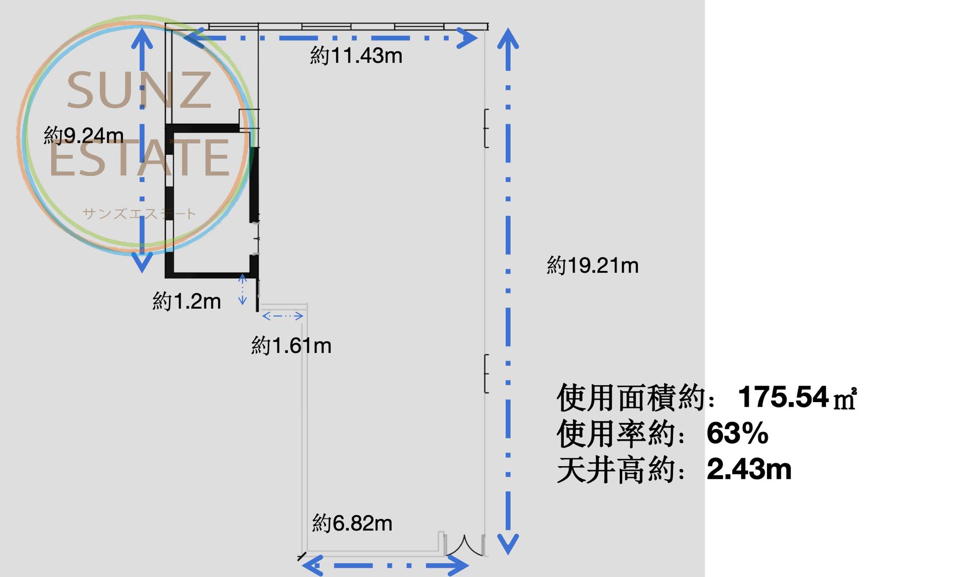 建築面積:277㎡ 賃料:5.0元/㎡/日 管理費:30元/㎡/月 16階 2.43