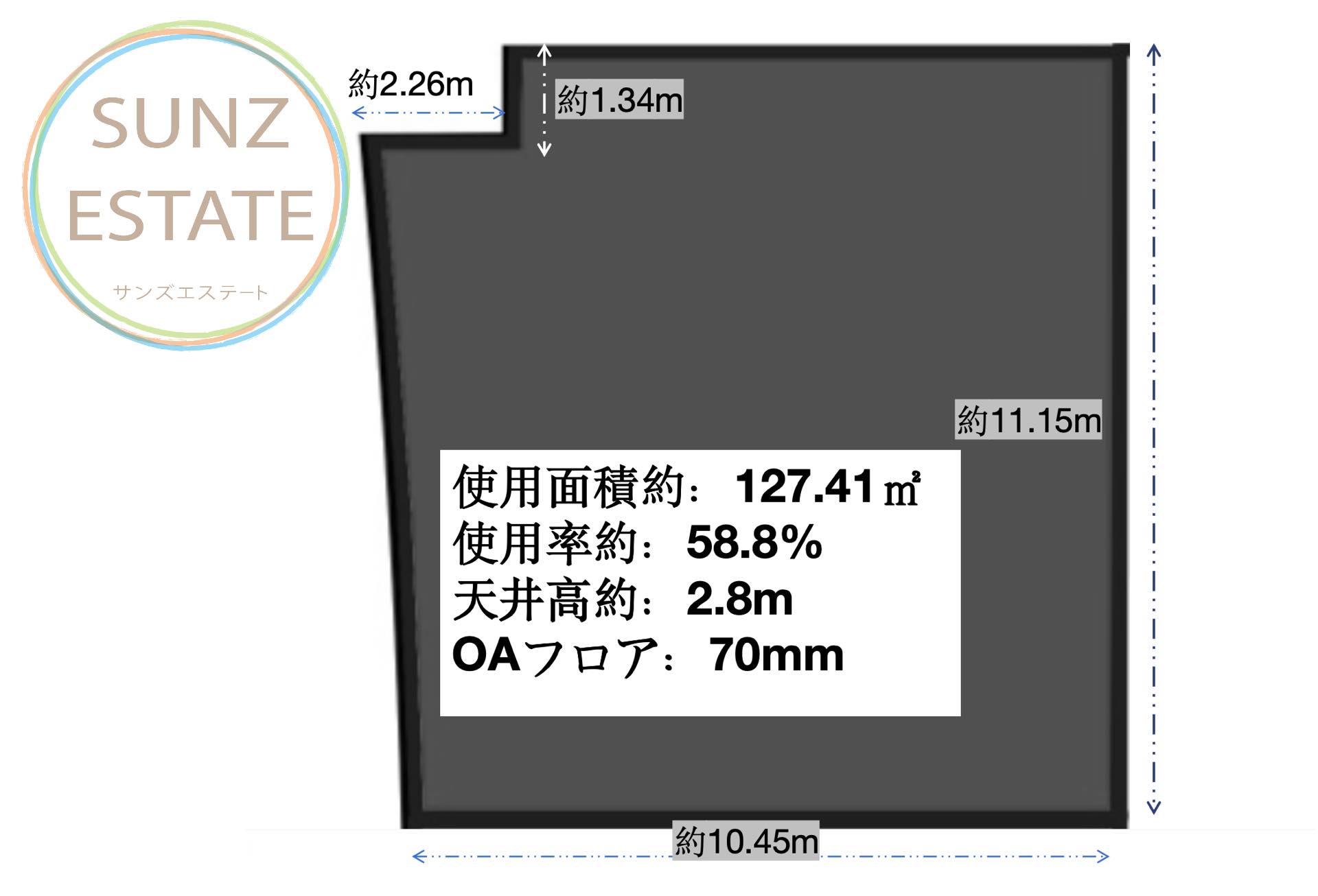 建築面積:193㎡ 賃料:4.5元/㎡/日 管理費:23元/㎡/月 22階