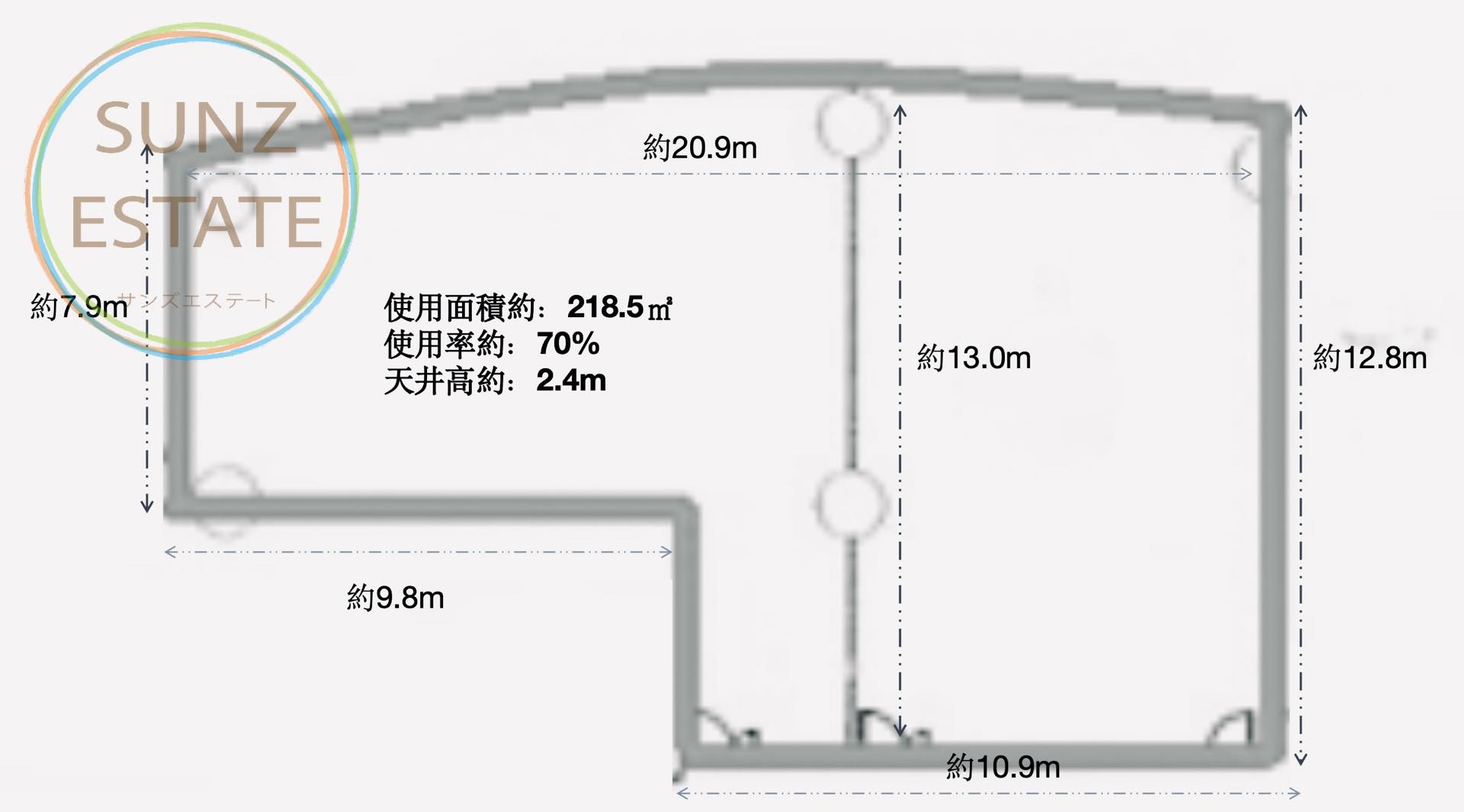 建築面積:312㎡ 賃料:5.0元/㎡/日 管理費:36元/㎡/月 19階