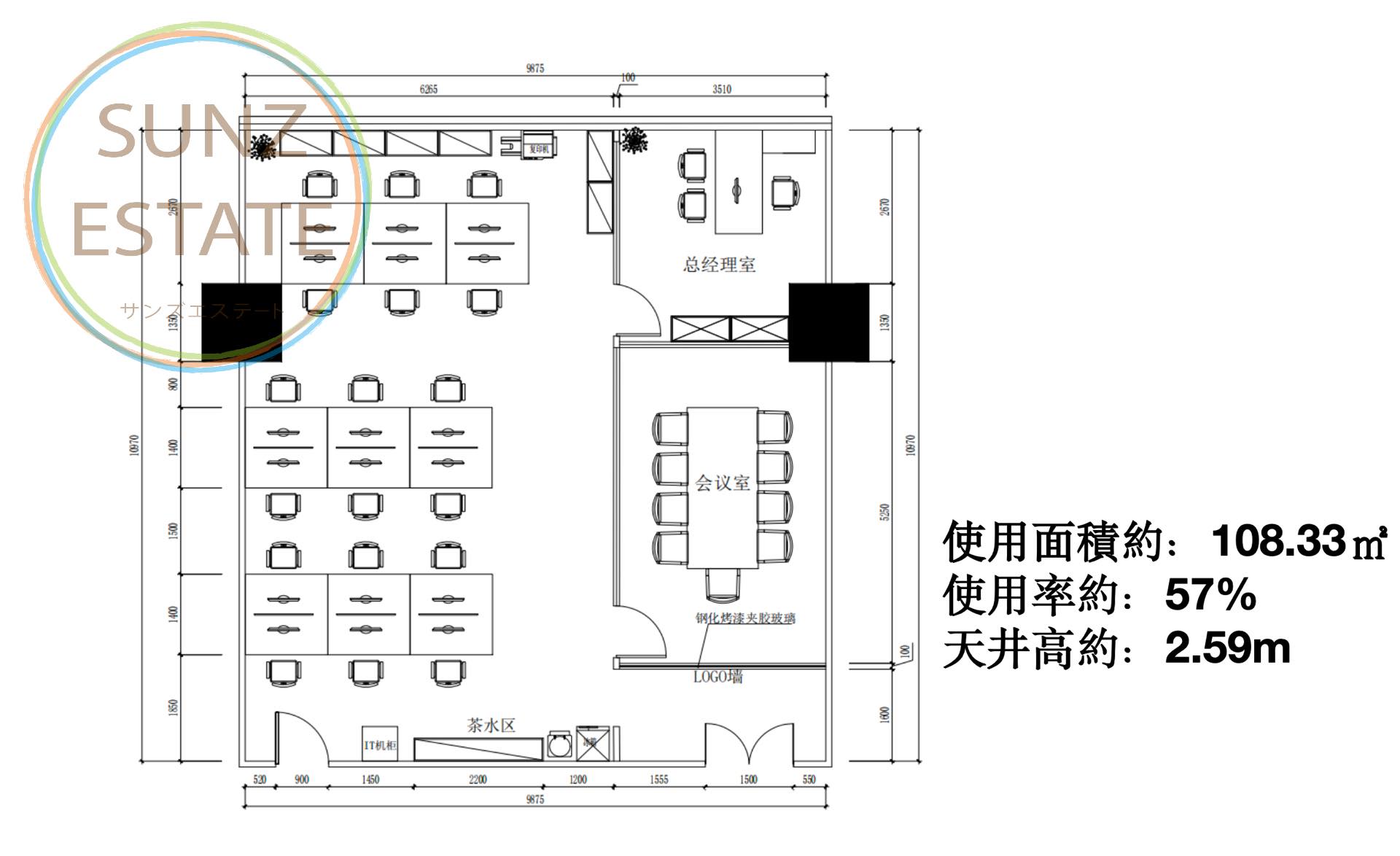 建築面積:190㎡ 賃料:4.3元/㎡/日 管理費:31元/㎡/月 26階