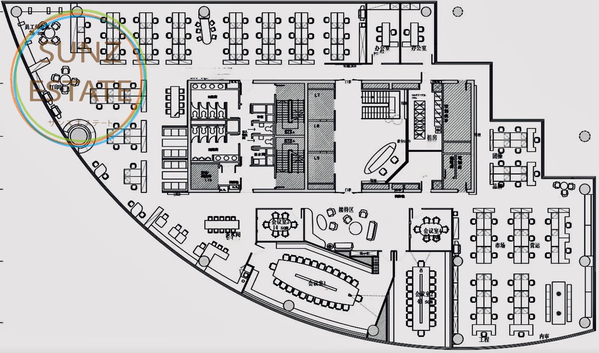 建築面積:1275㎡ 賃料:5.8元/㎡/日 管理費:36元/㎡/月 35階